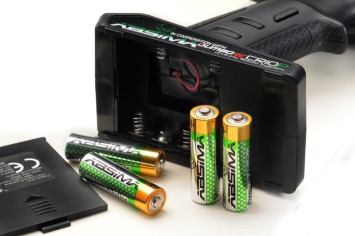 - El transmisor admite 4 pilas AA o una batería LiPo 2S (art. 4140015) como fuente de alimentación
