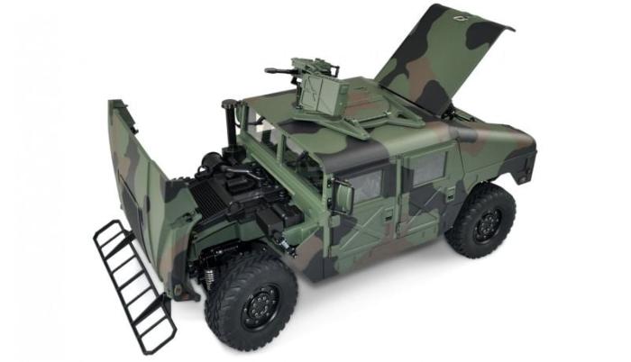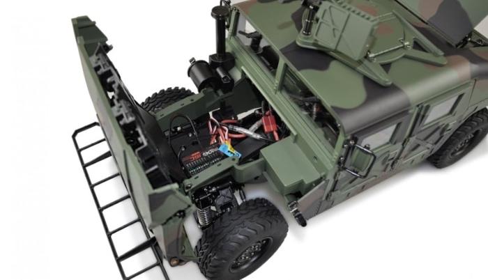 Camión militar estadounidense AMEWI 22420 4x4, escala 1:10, camuflaje parcial, metal, RTR, 16 canales, control remoto, ejes de portal impermeables(Código: AM22420-BER) |