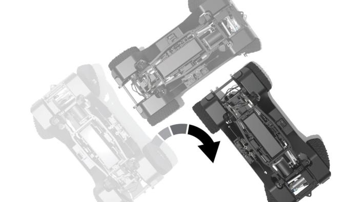 El chasis tipo bañera, completamente rediseñado, ofrece numerosas ventajas. Todos los componentes electrónicos son de fácil acceso, algo esencial con tanta tecnología instalada. Gracias al chasis "LCG" extremadamente plano y a la caja de cambios correspondiente, el centro de gravedad se desplaza hacia abajo, lo cual resulta especialmente útil en carrocerías altas. La caja de baterías está centrada y se adapta perfectamente a todas las baterías Lipo 2-3S y NiMH de 6-7 celdas gracias al cierre de velcro y al soporte ajustable. El control remoto de 10 canales es necesario para controlar todas las características técnicas. La unidad receptora/de iluminación 2 en 1 y el controlador de velocidad se mantienen separados para mantener todas las opciones disponibles para futuras optimizaciones y ajustes.