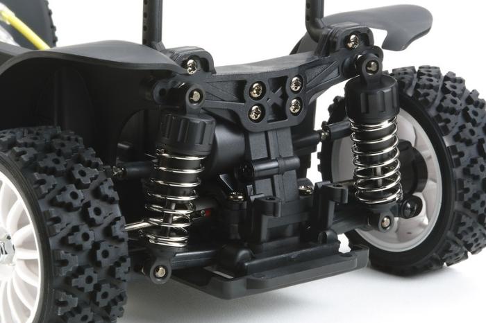 - Dispone de una gran elevación y está equipado con neumáticos de tacos de rally para garantizar una conducción dinámica de rally RC en superficies de grava y asfalto.